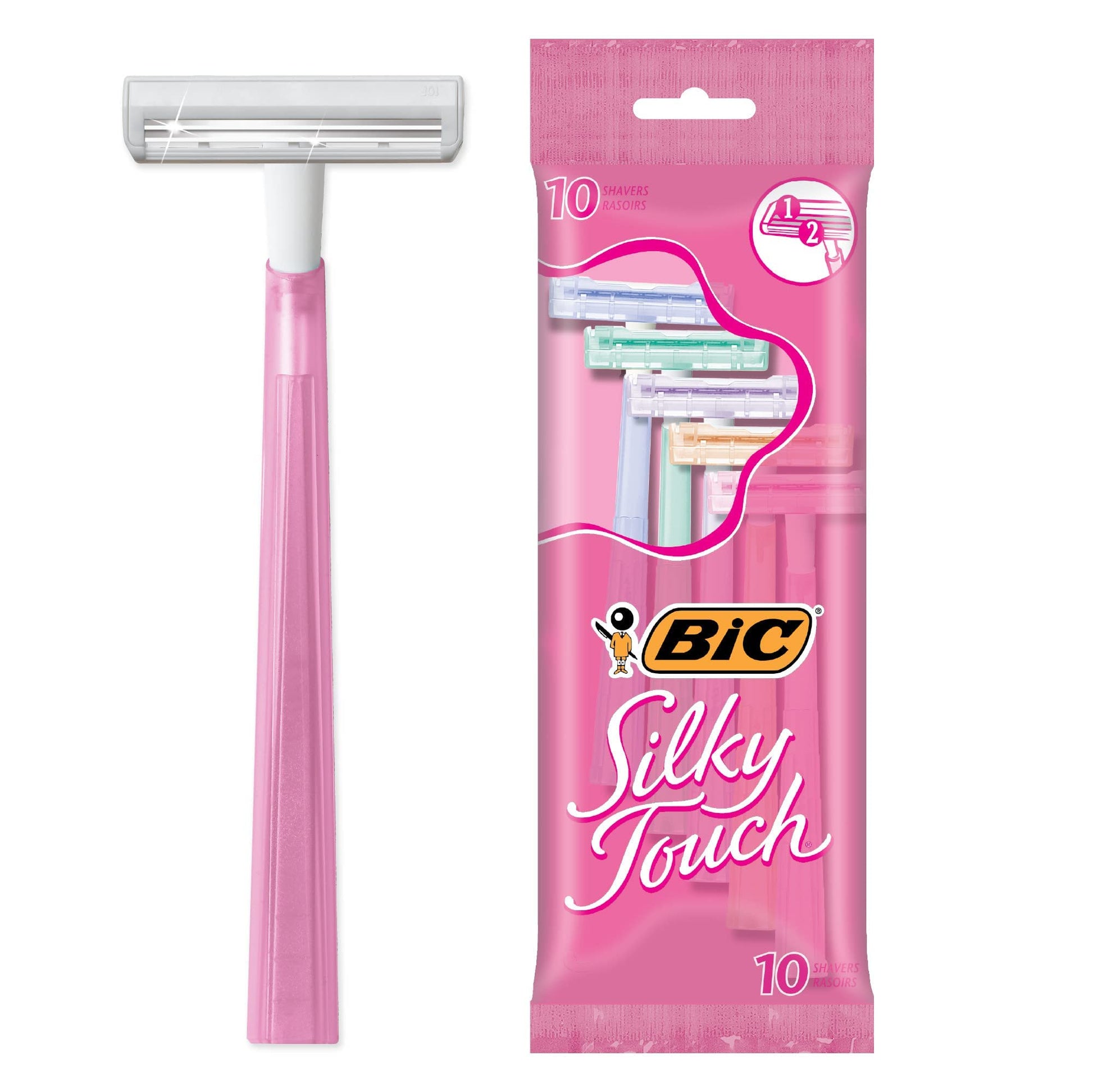 Details: Enjoy the comfortable shave you expect for less with BIC Silky Touch Disposable Razors for women with pretty pastel handles. To help deliver a smooth shave on any budget, this value pack of razors comes with 10 shavers, so you can stock up on your go-to razors. These ladies razors feature two blades that help deliver a smooth shaving experience. Each of these BIC Silky Touch shaving razors has a slim head for hard to reach areas and long, tapered handle to offer added confidence while you hold it. Plus, they come with Snap-On covers that make it easy to take your women's razors with you for a quick touch-up whenever you need one! These BIC twin-blade womens razors come in four pretty pastel shades, so you can add a feminine pop of color to your grooming routine. Looking for even more ways to save? Check out the range of BIC Silky Touch disposable razors bulk pack sizes to find the right fit for your needs. Choose BIC Silky Touch Women's Razors for the dependable, silky shave you deserve