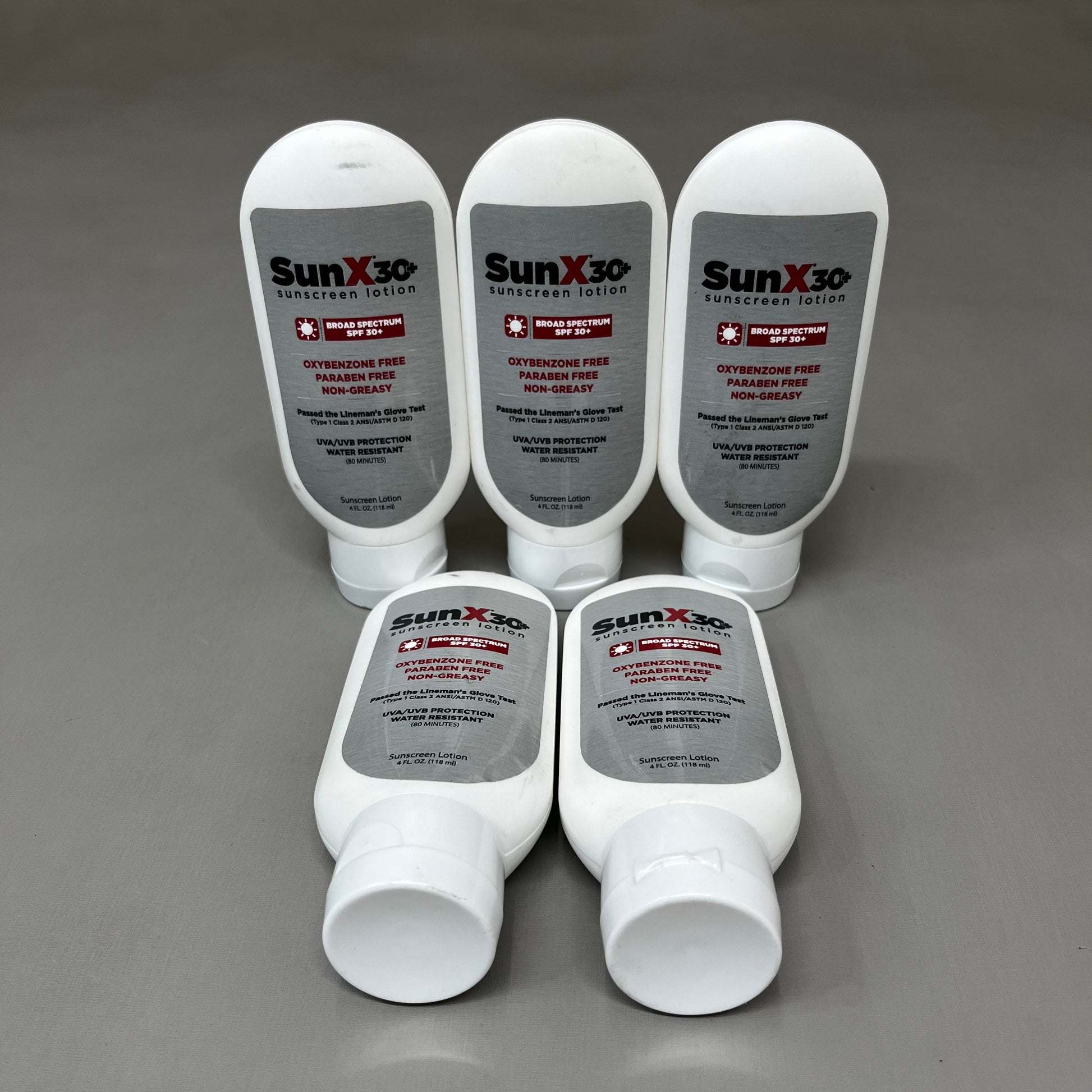 CORTEX 5 Pack! SUNX Sunscreen Lotion Tottle Bottle SPF 30 4 fl oz. 1PBT3 (New)
