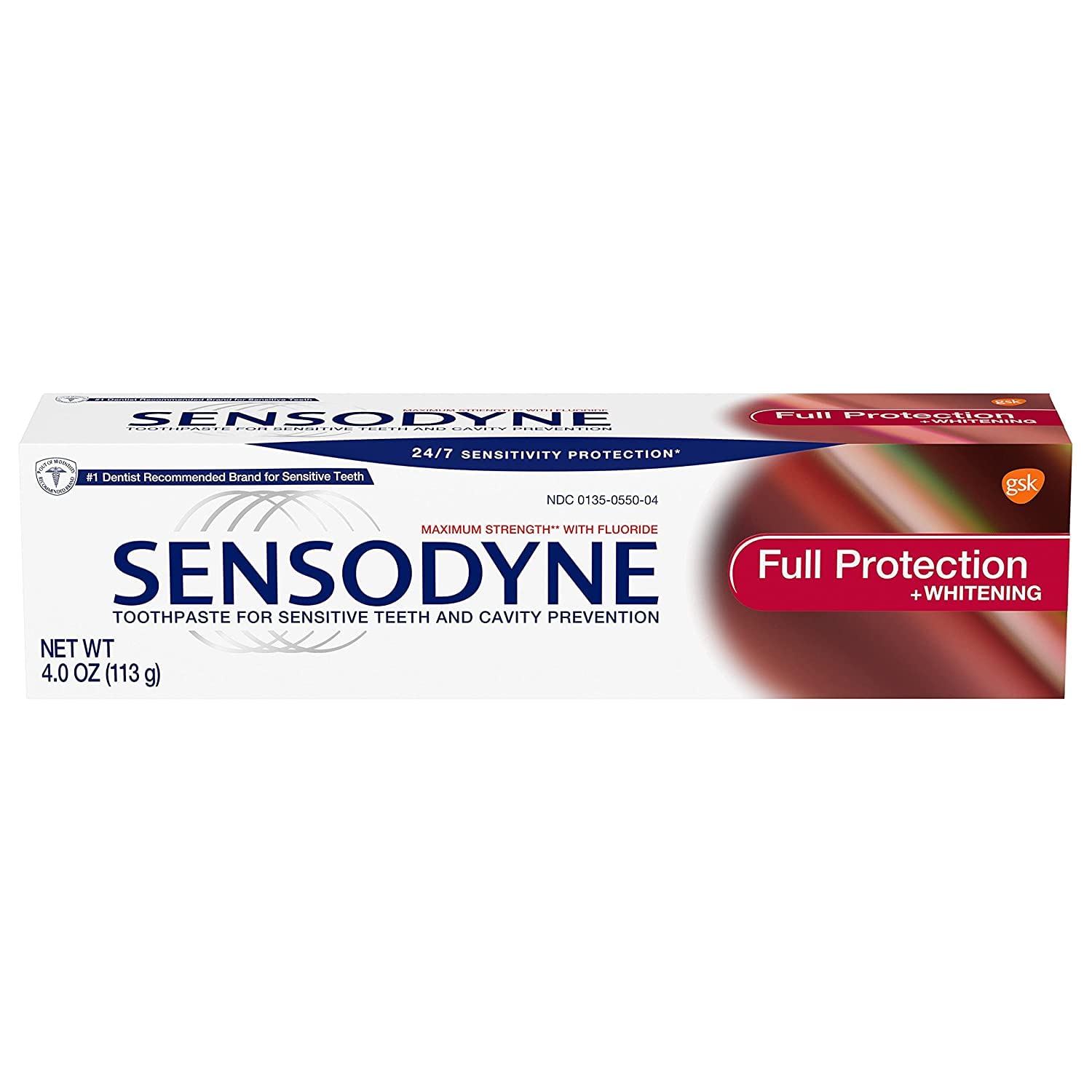Sensodyne Toothpaste for Sensitive Teeth and Cavity Prevention, Maximum Strength, Full Protection, 4-Ounce Tubes (1)