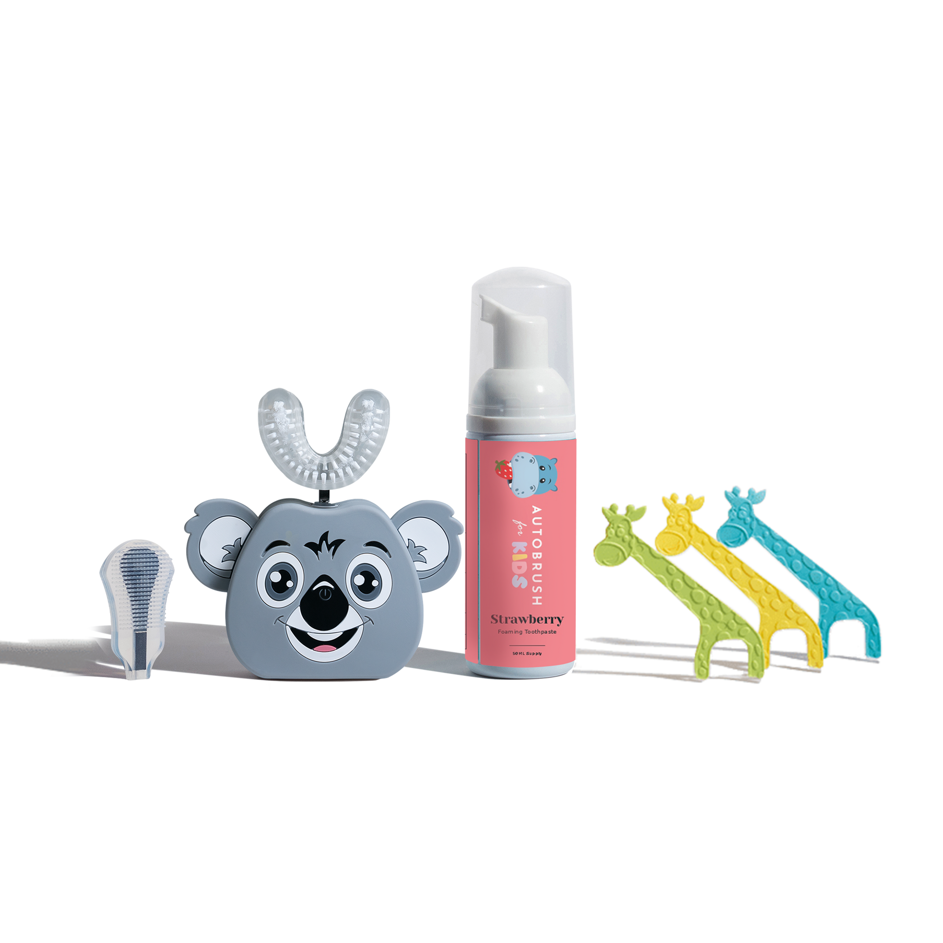 With autobrush® for Kids, children can enjoy brushing their teeth while listening to funky jungle tunes through its electric cleaning mode. Our Kori the Koala base is designed to be kid-friendly and simple to use, enabling kids to maneuver the brush effortlessly. Kids' total package includes autobrush® Foam toothpaste, a 50ct pack of flossers, & automatic tongue scrapper attachment.