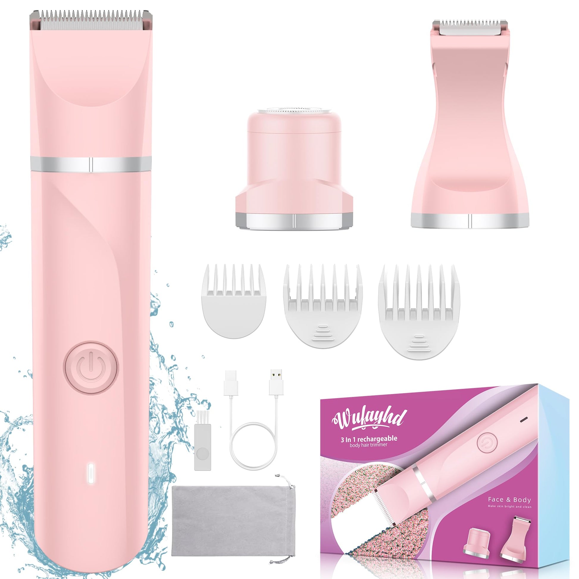 - 3-in-1 Ladies Shaver for a Stubble-Free Look - The WUFAYHD Bikini Trimmer Kit includes three detachable trimmer heads and three guard combs. Use the Body Trimmer (32mm) for quick and easy large-area trimming, the Detail Head (20mm) for precise bikini detailing, and the Facial Hair Shaver Head for a painless, smooth finish. Say goodbye to unwanted cheek, lip, and chin hair, and enjoy a flawless look without the hassle of stray hairs or peach fuzz